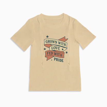 Discreet Nursing T-Shirt | "Grown with Love" Slogan | Side Zippers