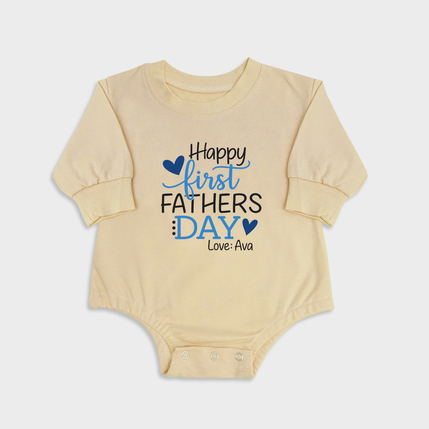 Happy First Fathers Day Blue Long Sleeve Newborn & Baby Onesies Yellow