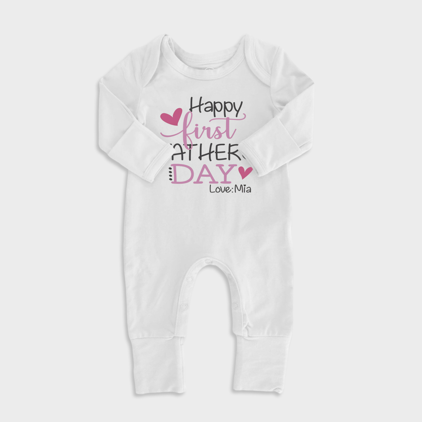 Happy First Fathers Day Pink Baby Full Length Snap Jumpsuit Baby Onesies