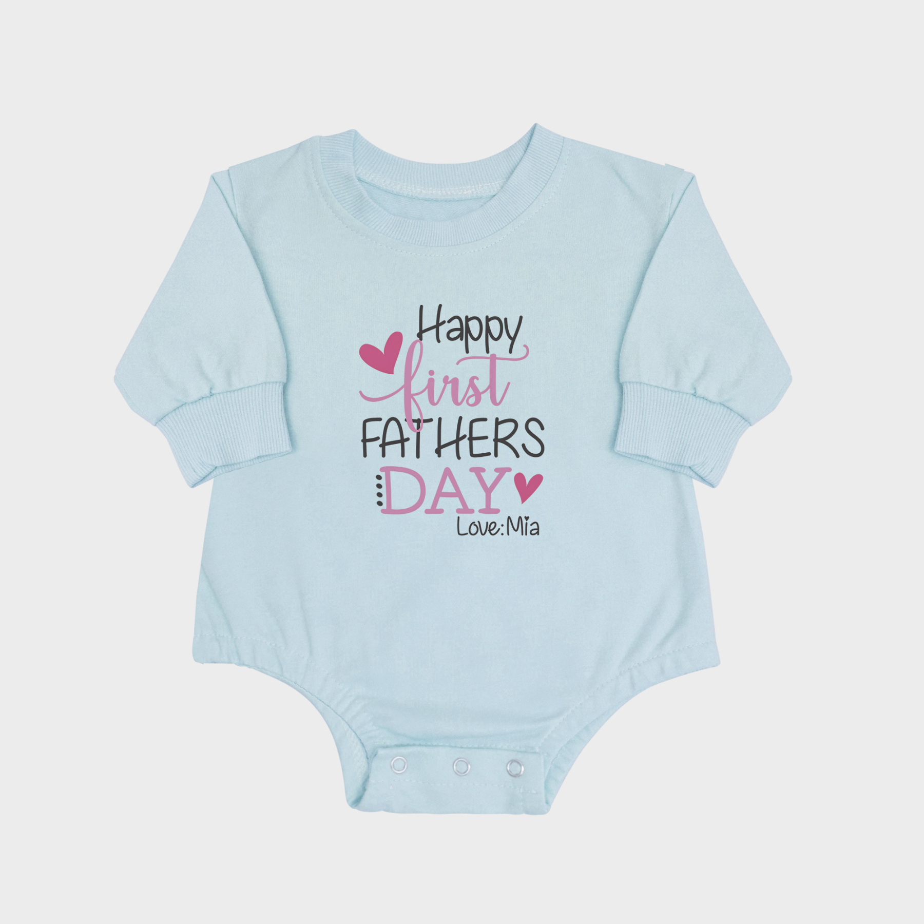 Happy First Fathers Day Pink Long Sleeve Newborn-& Baby Onesies Blue
