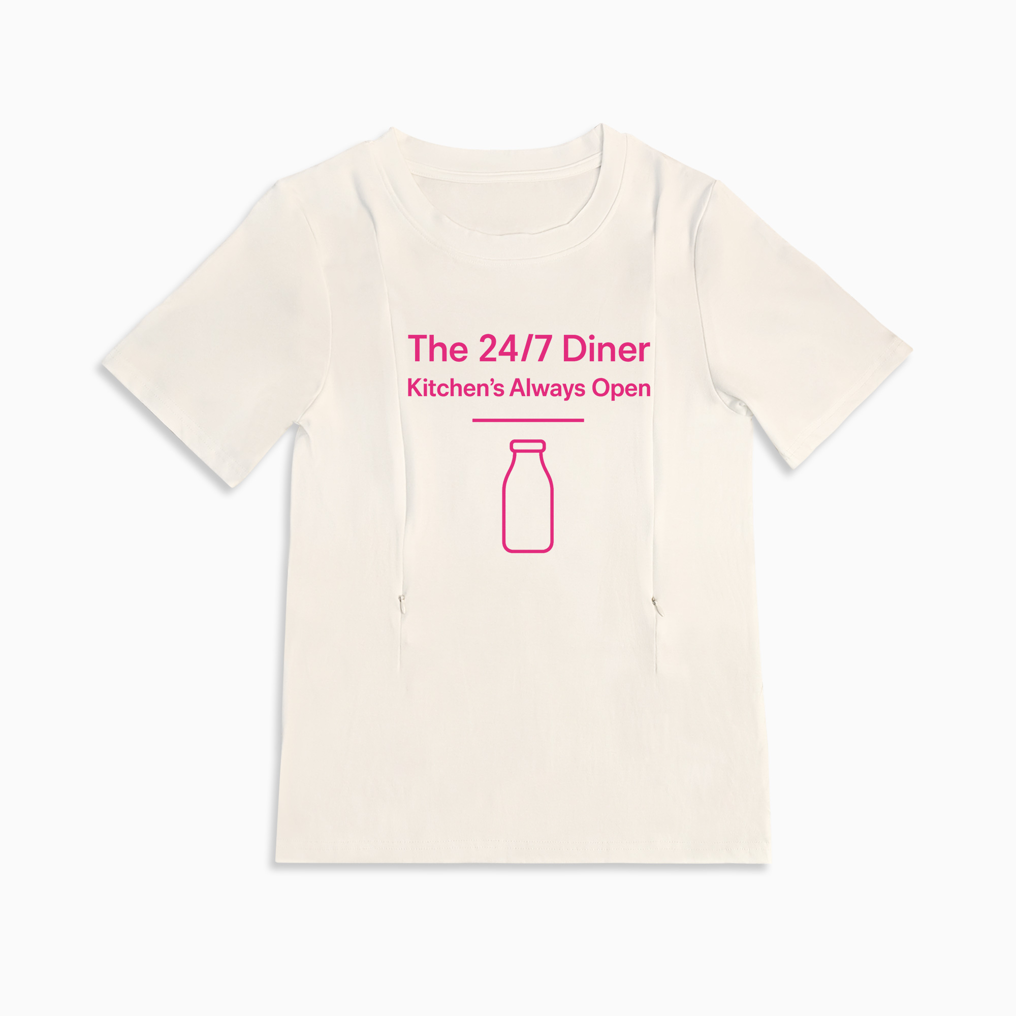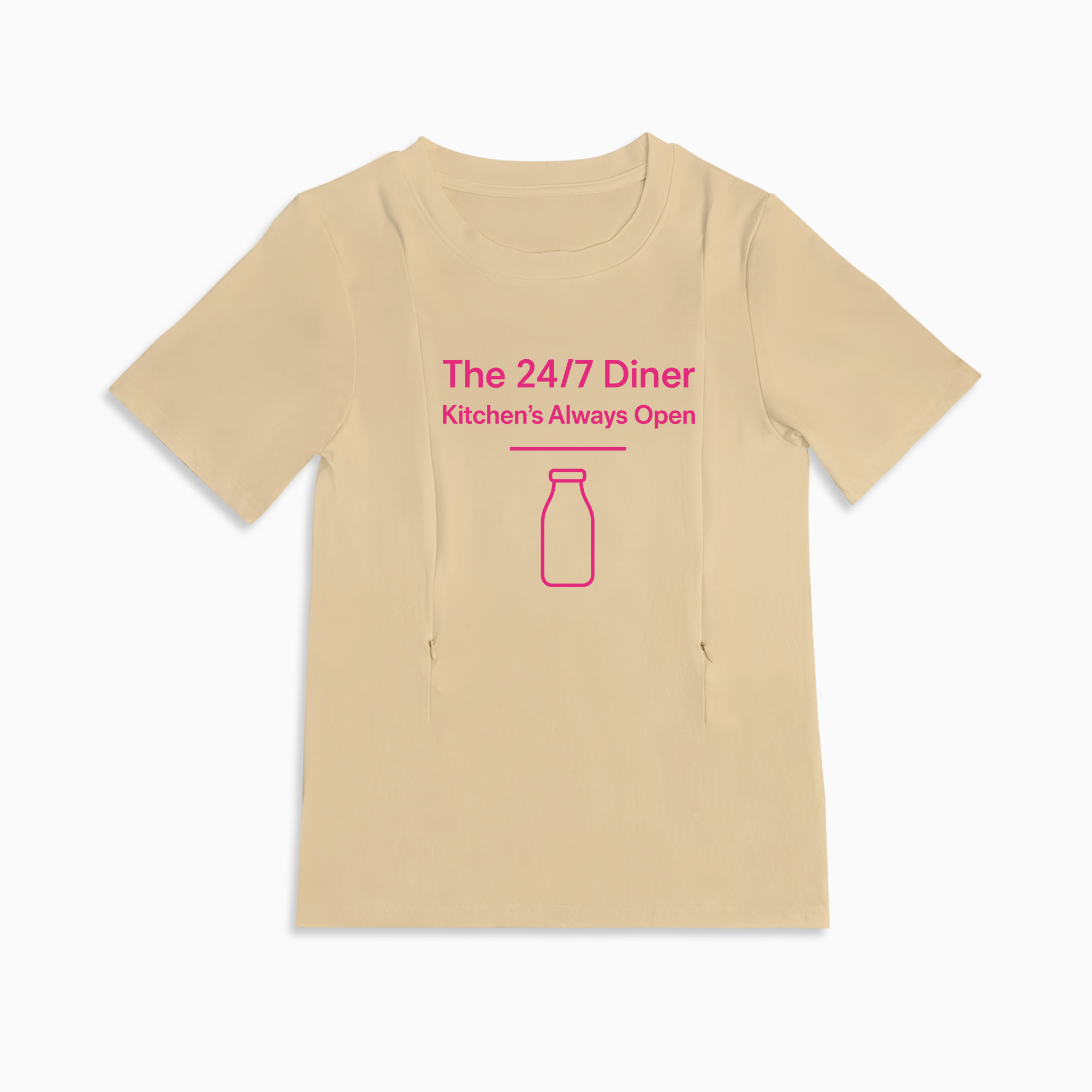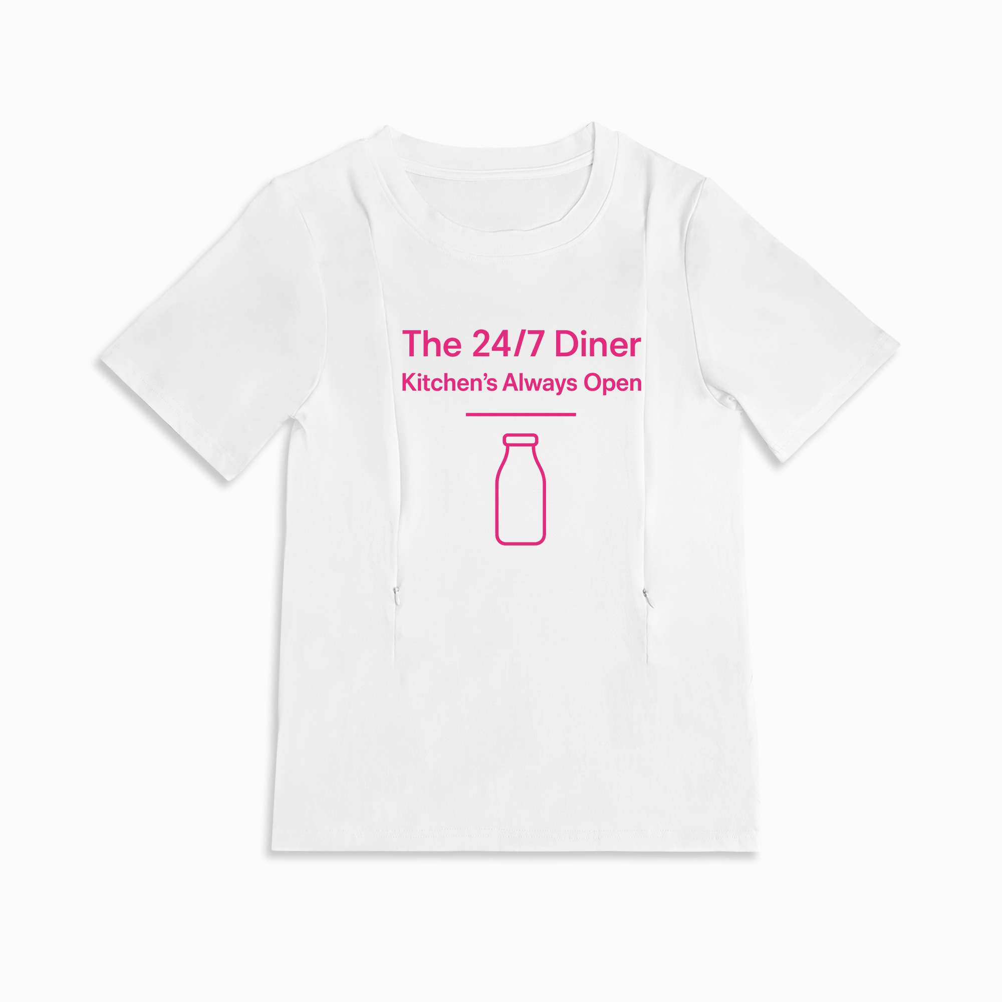 We know that being a new mama means you're always on call. The "24/7 Diner" isn't just a t-shirt; it's a badge of honor, designed with love for you and your baby. This top combines the humor of motherhood with the practical function you desperately need. Made from cloud-soft cotton, it feels gentle against both your skin and your baby's, making those precious cuddle-and-feed moments even sweeter. Say goodbye to awkward layers and hello to simple, stylish, and speedy feeding times!